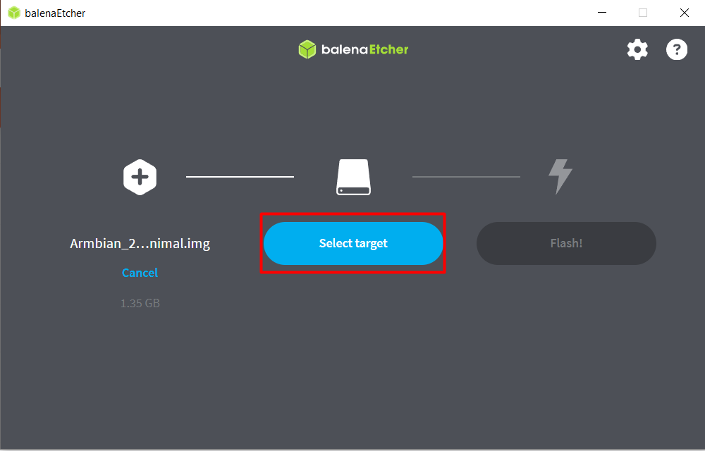 8. Klik Select Target untuk memilih kartu memori yang bisa dijadikan flash untuk Armbian Imager tersebut.