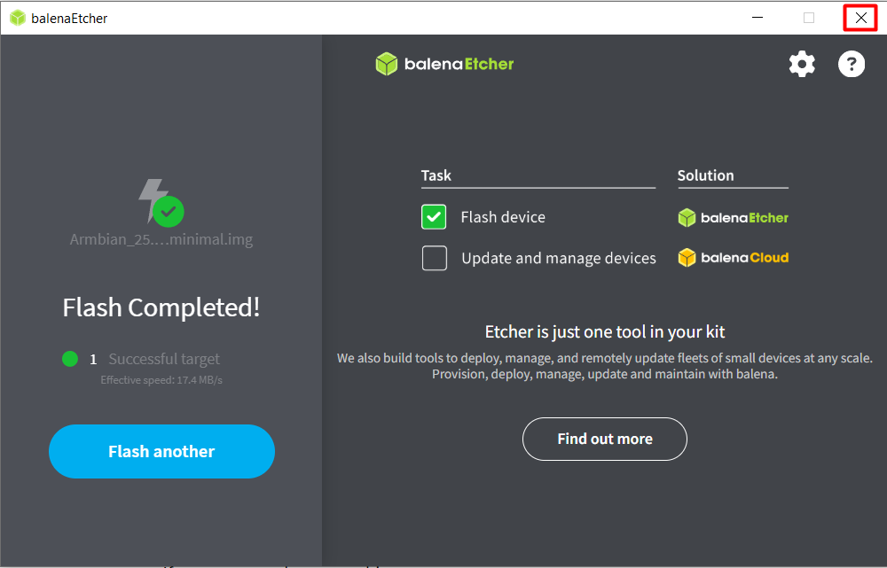 10. Klik Flash untuk melakukan flashing Armbian Imager ke dalam kartu memori yang telah dipilih.