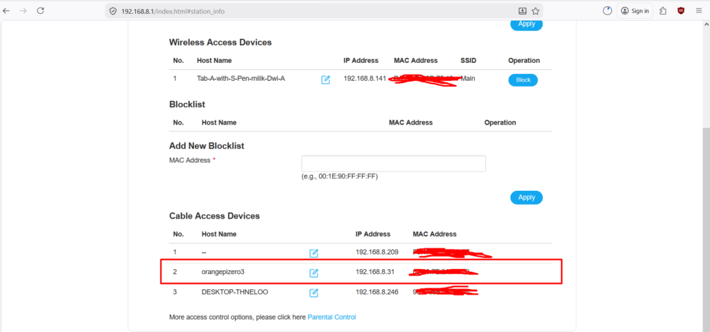 23. Carilah nama host yakni orangepizero3. Setelah ketemu nama host tersebut, maka salinkan alamat IP tersebut yang akan untuk berhubung ke server Armbian tadi melalui SSH.
