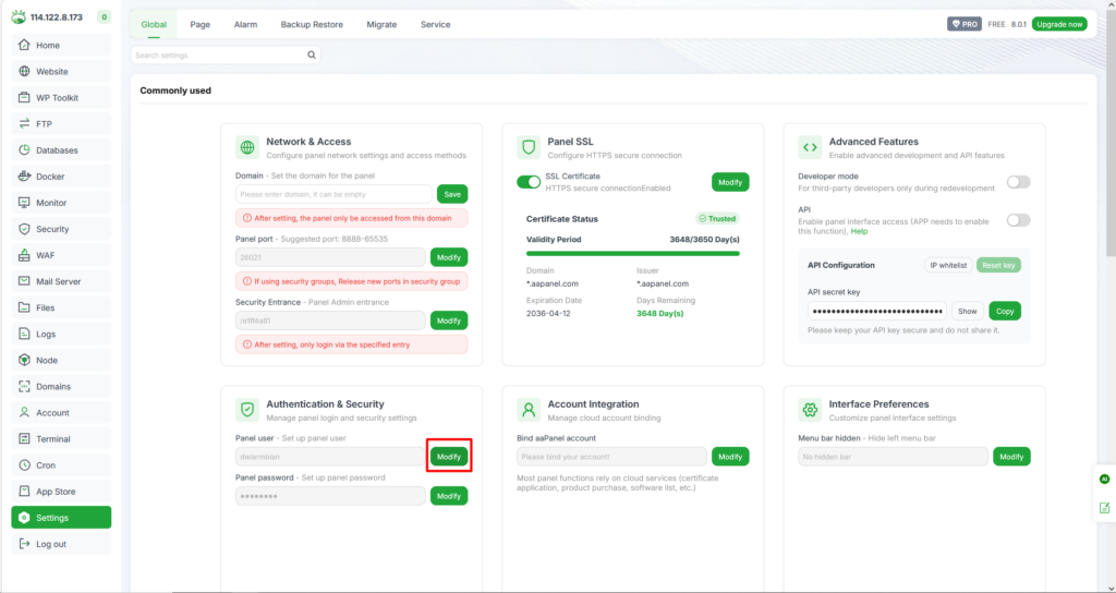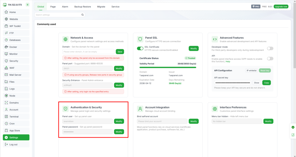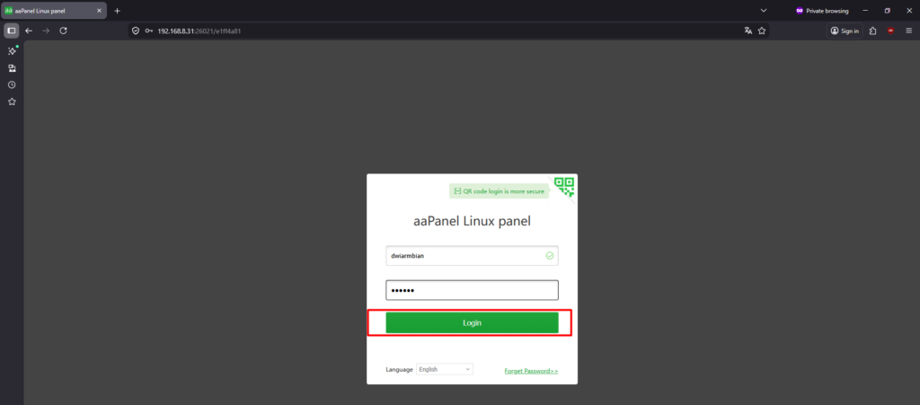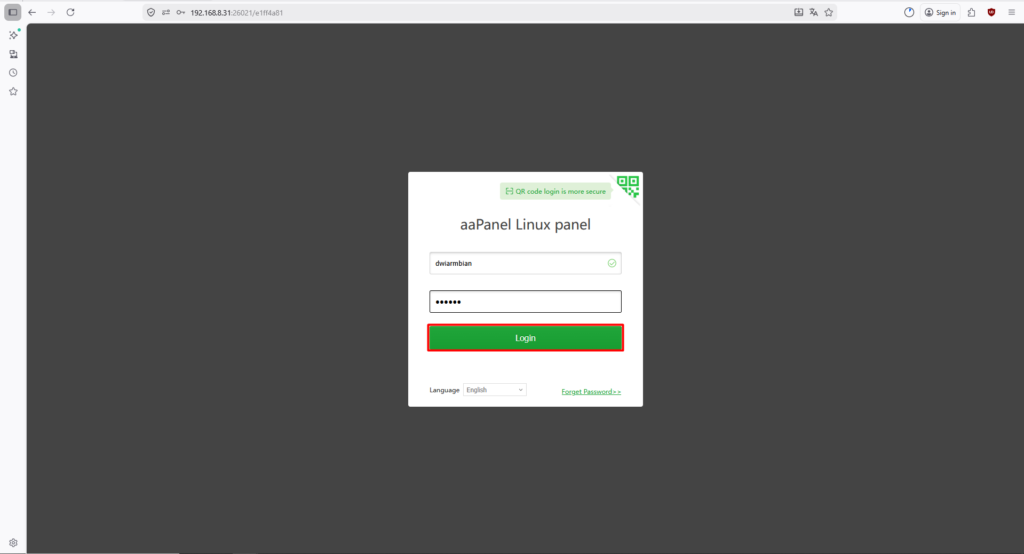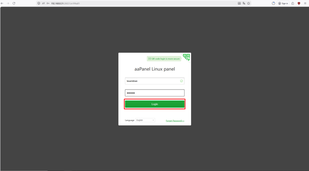 20. Berikut hasil untuk perubahan username dan password di Aapanel.