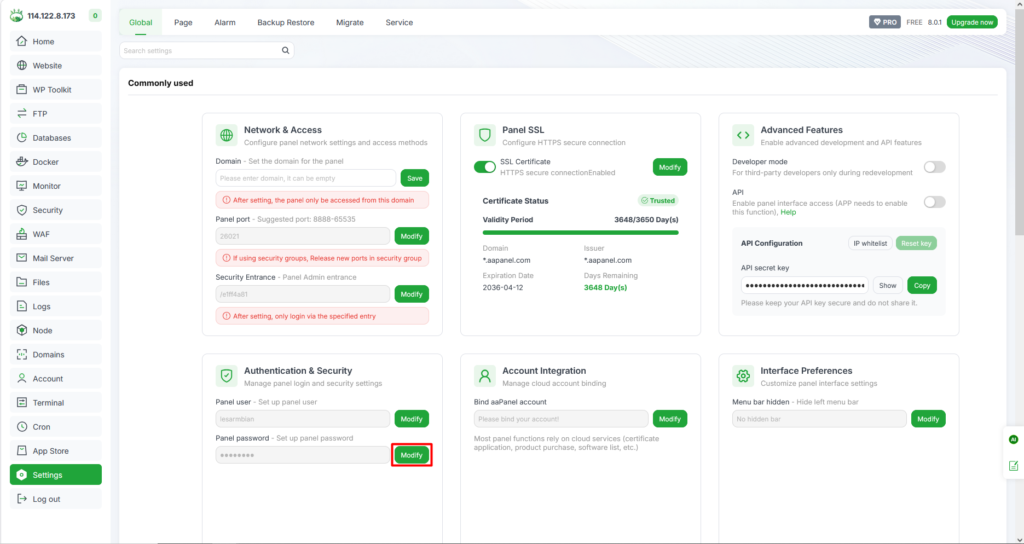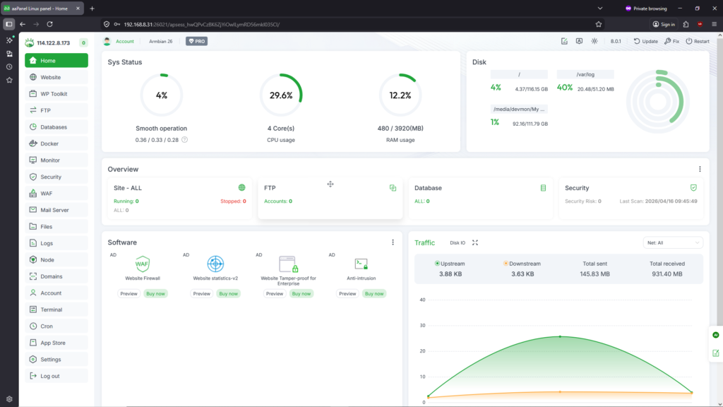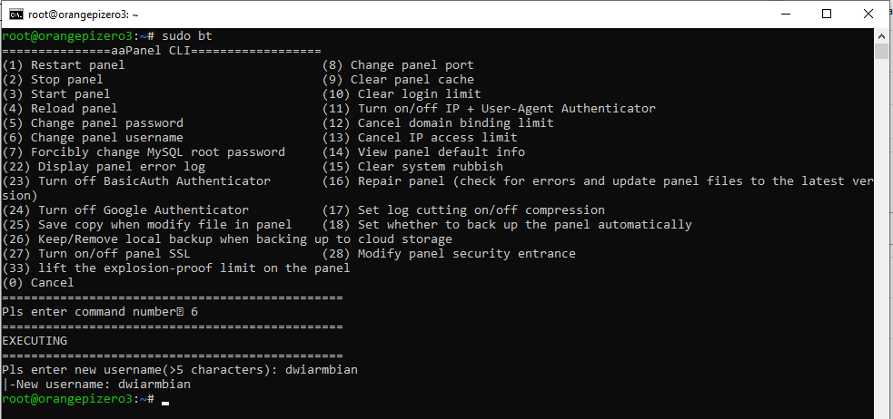 Artikel kali ini membahas tentang tutorial dalam mengganti username dan/atau password akun lama menjadi baru khusus bagian Admin Panel di Aapanel pada Orange Pi Zero 3. Setelah instalasi Aapanel ke dalam Orange Pi Zero 3 diberikan username dan password secara default yang dimana sebagian pemegang server itu susah hafal atau ingat untuk lakukan login ke portal Aapanel.