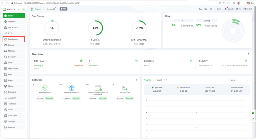 2. Masukkan alamat IP Aapanel Admin ke kolom address bar, tekan Enter.